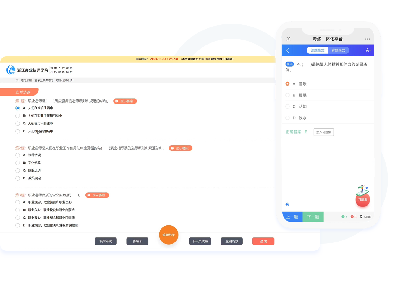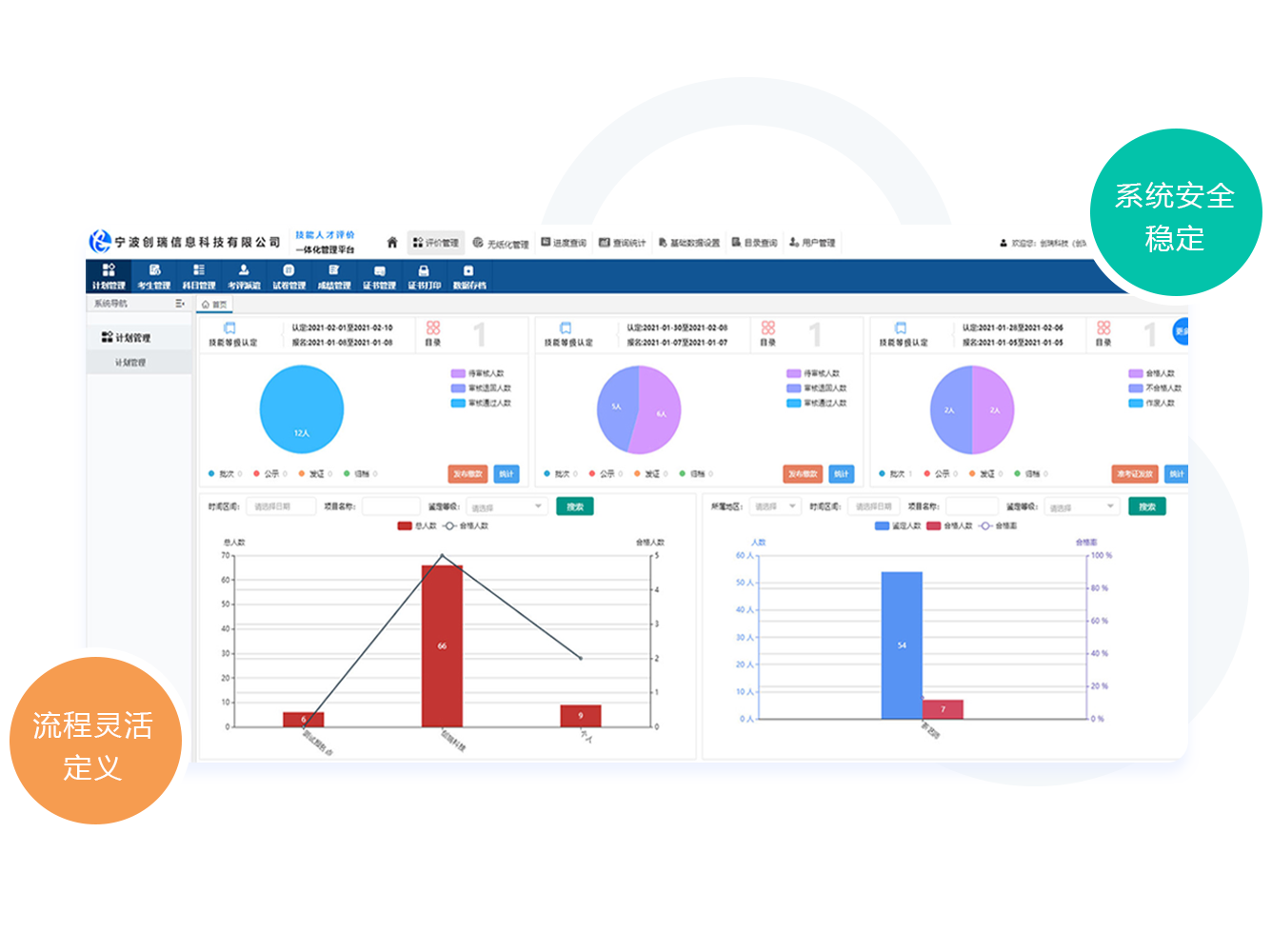 为开展考核评价机构按照自身考核标准的要求,通过测量学原理,建立知识考试资源库,对职业等级、知识结构、考题内容和组卷模型全方位的管理与命题服务同时满足无纸化考试和传统考试的需求